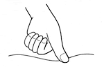 痛みを感じる姿勢を探し、痛みを感じる箇所へ貼って押す